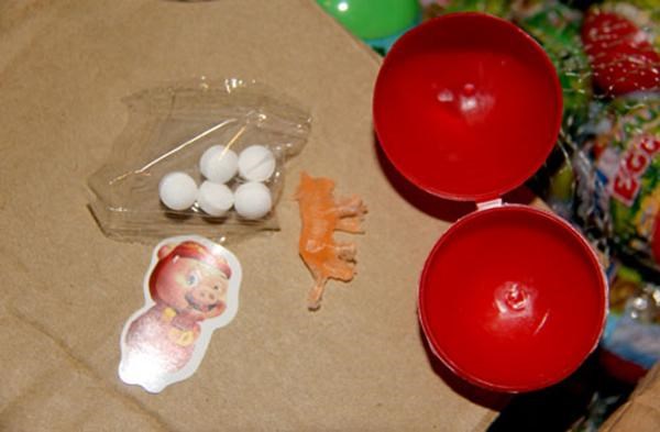 Kẹo bên trong trứng khủng long được bán phổ biến tại cổng các trường học. Ảnh: Q.TẤN.