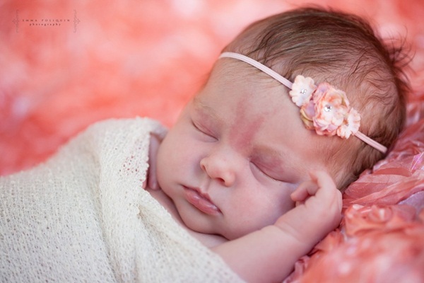 Trẻ nhỏ thường có các vết chàm đỏ hoặc hồng ở khu vực giữa 2 mắt, trên mí mắt hoặc ở gáy. Hiện tượng này còn được gọi bằng một cái tên mĩ miều hơn, đó là nụ hôn thiên thần. Đây thực chất là vấn đề nhỏ xảy ra với các mạch máu trên da. Vấn đề thường kéo dài một năm hoặc lâu hơn, sau đó tự biến mất mà không cần bất cứ can thiệp y tế nào.