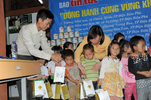 Báo Tin Tức phối hợp cùng Nam Dương tặng quà cho trẻ em nghèo Điện Biên