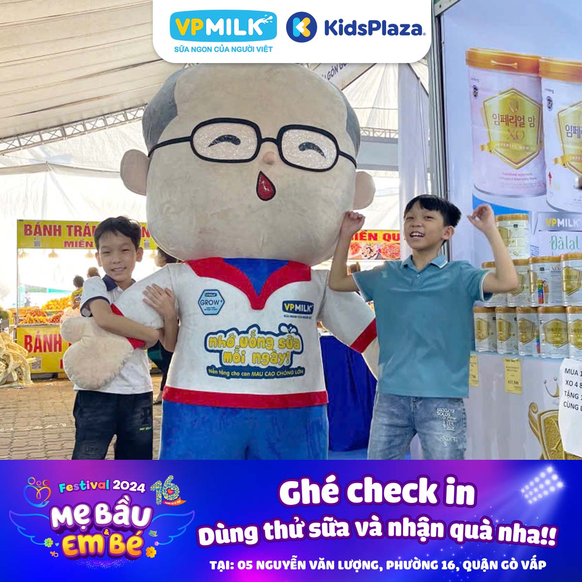 Sau thành công rực rỡ tại Hà Nội, lần này VPMILK và Kidsplaza tiếp tục mang đến cho các gia đình, mẹ bầu và bé yêu những trải nghiệm vô cùng vui nhộn và hữu ích. Đây chính là cơ hội tuyệt vời để các gia đình cùng nhau khám phá nhiều hoạt động thú vị và rinh về 16.000 phần quà check-in miễn phí.
